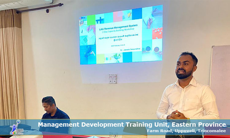 The Management Development Training Unit (MDTU) conducted a two-day Training Programme on Personal File Management from 22nd to 23rd January 2026 at the MDTU in Trincomalee.  The Management Development Training Unit (MDTU) conducted a two-day Training Programme on Asset Management and Board of Survey from 27th to 28th January 2026 at the Rest House, Ampara.  The Management Development Training Unit (MDTU) conducted a two-day Training Programme on Asset Management and Board of Survey from 29th to 30th January 2026 at the RDHS Office, Kalmunai.  The Management Development Training Unit (MDTU) conducted a two-day Training Programme on Asset Management and Board of Survey from 29th to 30th January 2026 at the MDTU, Trincomalee.  The Management Development Training Unit (MDTU) conducted a one-day Workshop on Occupational Stress Management on 5th February 2026 at the Coop Inn, Ampara, targeting officers serving in the Ampara District.  The Management Development Training Unit (MDTU) conducted a one-day Training Programme on Front Desk Management on 6th February 2026 at the Coop Inn, Ampara, specifically targeting Primary Grade Officers serving in Eastern Provincial Council institutions in the Ampara District.  The Management Development Training Unit (MDTU) conducted a Training Programme on API Tax on 10th February 2026 at the MDTU in Trincomalee. The training programme was specifically designed for Accountants and Officers engaged in financial and accounting functions within the Eastern Provincial Council.  The Management Development Training Unit (MDTU) conducted a one-day Workshop on Occupational Stress Management on 10th February 2026 at the RDHS Office, Kalmunai, targeting officers serving in the Ampara District.  The Certificate Awarding Ceremony of the General English Certificate Course for Primary Grade Officers of the Eastern Province was held on Friday, 13 February 2026 at 10.30 a.m. at the Management Development Training Unit (MDTU), Trincomalee.  The Management Development Training Unit (MDTU) conducted a two-day Training Programme on the LAA Revenue Management System from 19th to 20th February 2026 at the Rest House, Ampara.  The Management Development Training Unit (MDTU) conducted a one-day Workshop on Occupational Stress Management on 20th February 2026 at the MDTU, Trincomalee, targeting officers serving in the Trincomalee District.
